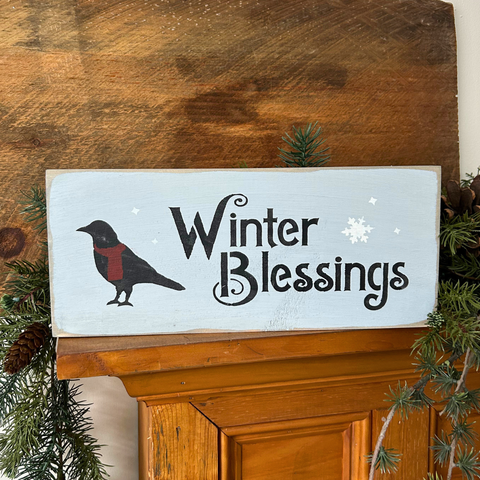 Winter Blessings Wooden Sign for The Rustic Home